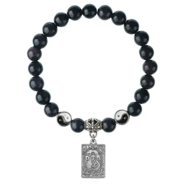 Браслет из синтетического синего авантюрина с подвеской-талисманом в виде карты Таро.