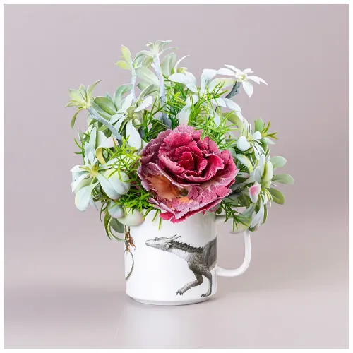 Цветочная композиция в кружке Волшебный Дракон, ширина 21 см, высота 23 см