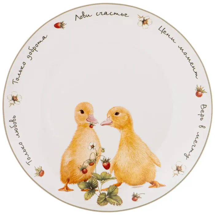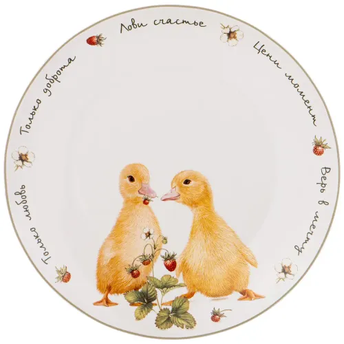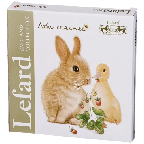 Тарелка закусочная «Лови счастье» от бренда Lefard предназначена для подачи закусок и десертов. Изделие изготовлено из фарфора, что обеспечивает прочность и гигиеничность. Декоративное оформление с изображениями крольчат и утят определяет стилистику коллекции.