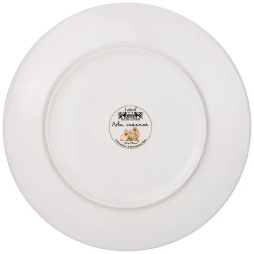 Тарелка выполнена из фарфора, известного устойчивостью к повреждениям. Изделие имеет классическую круглую форму с ровным бортиком, удобную для сервировки. Дизайн нанесён на поверхность, устойчивую к мытью.