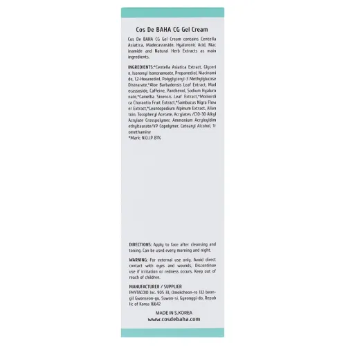 Восстанавливающий крем-гель для лица Centella Gel Cream от Cos De Baha создан специально для ухода за чувствительной и повреждённой кожей. Основным активным ингредиентом является центелла азиатская, содержание которой достигает 81%. Этот компонент эффективно снимает раздражение, способствует регенерации клеток и глубоко увлажняет кожу. Продукт подходит для ежедневного использования и обеспечивает комплексный уход благодаря натуральному составу.