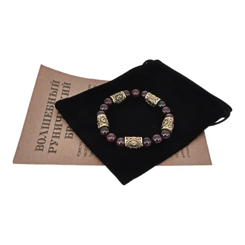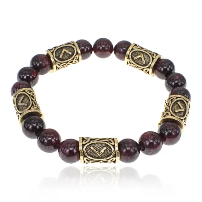 Браслет с рунами под золото Кеназ, с нат. камнем Гранат 10мм BSR2-019