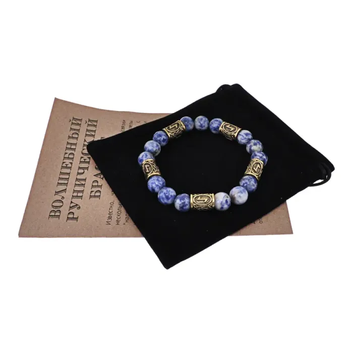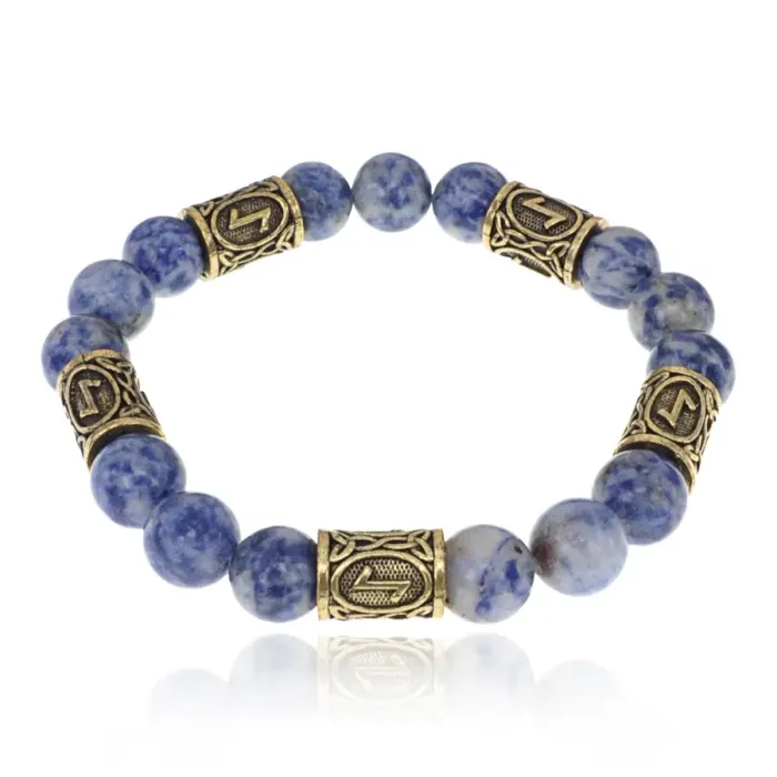 Браслет с рунами под золото Эйваз, с нат. камнем Содалит 10мм BSR2-022