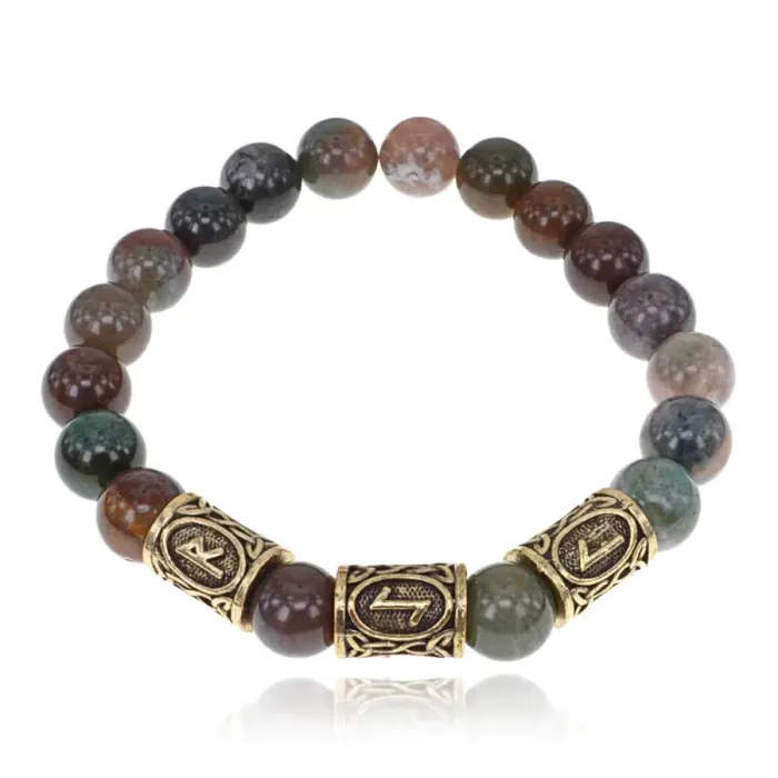 Браслет с рунами под золото Руны Дороги (защита в пути), с нат. камнем Яшма 10мм BSR2-029