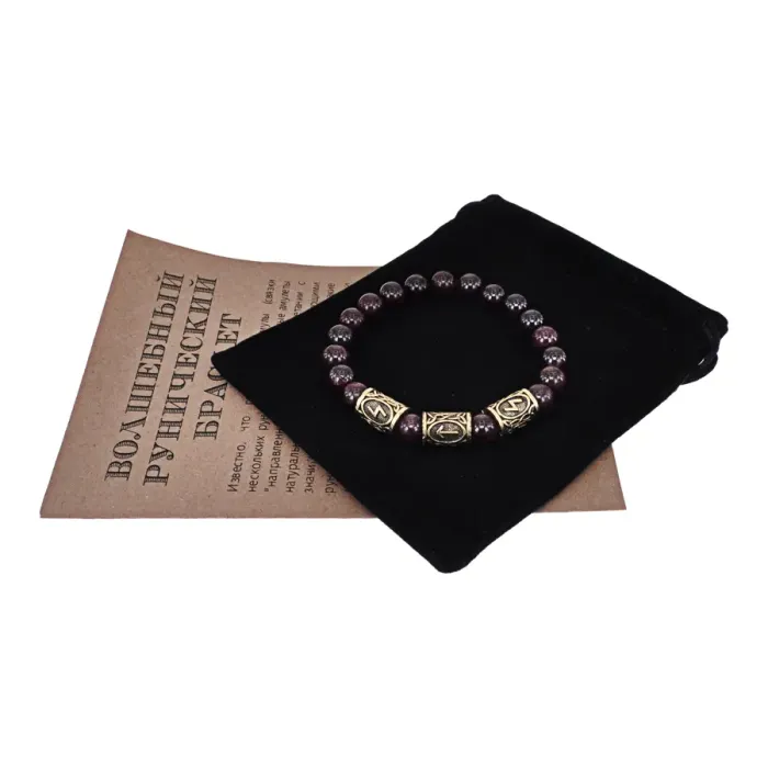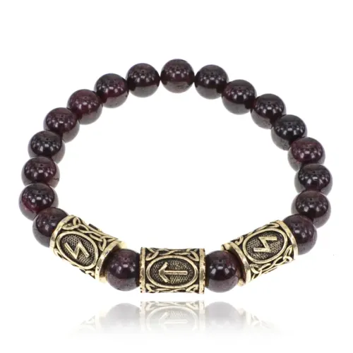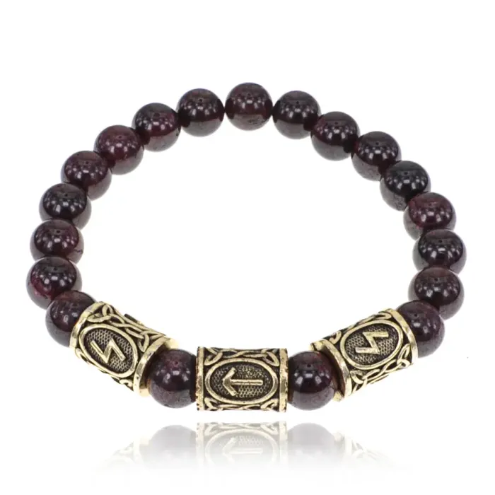 Браслет с рунами под золото Победа над злом, с нат. камнем Гранат 10мм BSR2-031