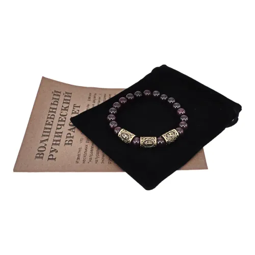 Мужской стрейч-браслет с рунической символикой из бижутерного сплава под золото и натурального граната.