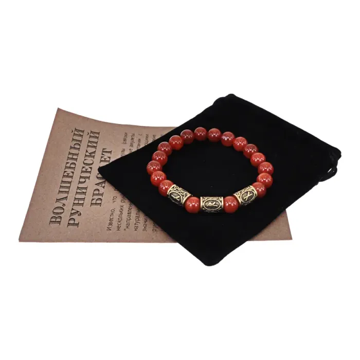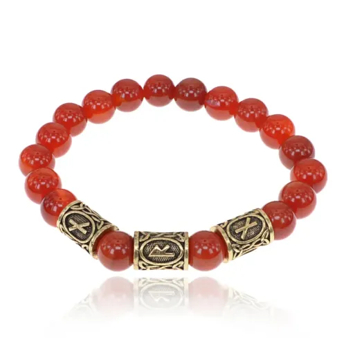 Браслет с рунами под золото Защита от колдовства, с нат. камнем Сердолик 10мм BSR2-032
