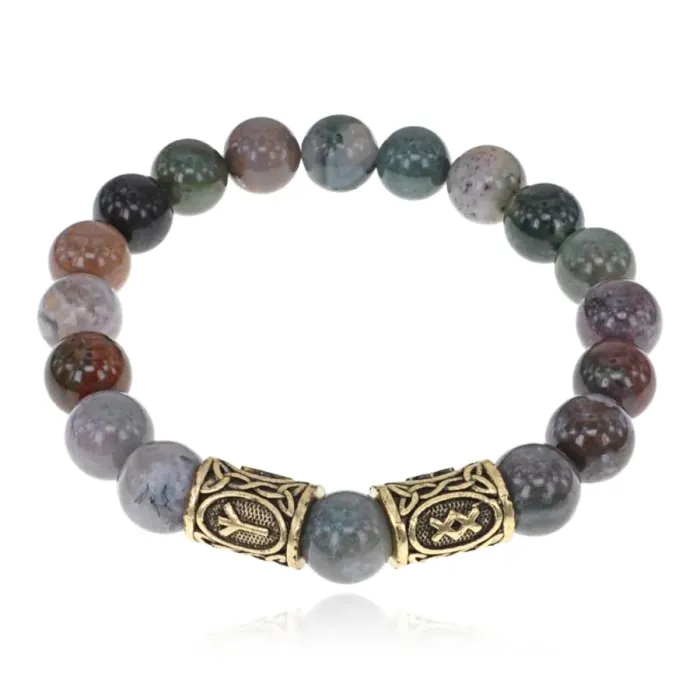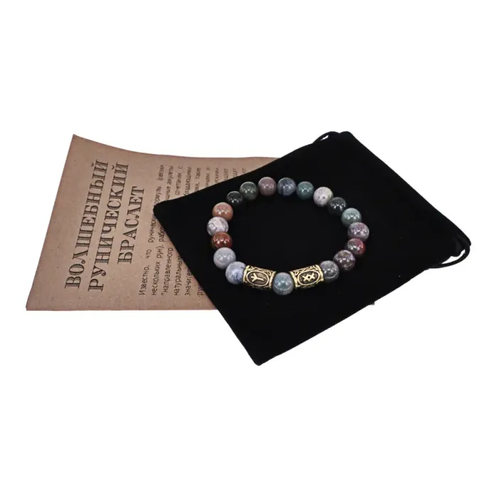 Браслет с рунами под золото Процветание и защита, с нат. камнем Яшма 10мм BSR2-044