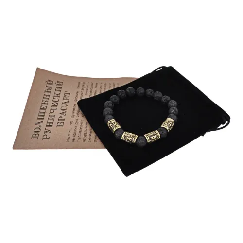 Рунический браслет "Мужская слава" — это стильный аксессуар, который сочетает в себе мощь природы и символику древних рун. Изготовленный из натурального камня Лава диаметром 10 мм и бусин из бижутерного сплава с прочным покрытием под золото, этот браслет не только привлекает внимание, но и наполняет энергией.
