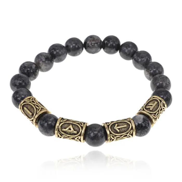 Браслет с рунами под золото Избавление от зависимости, с нат. камнем Лабрадор 10мм BSR2-050