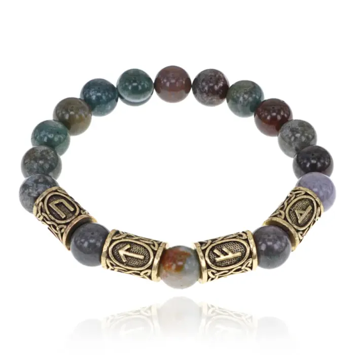 Браслет с рунами под золото Работа и карьера, с нат. камнем Яшма 10мм BSR2-068