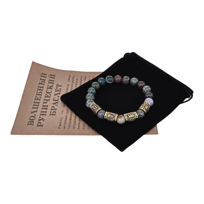 Размеры и комплектация: Стрейч-браслет, внутренний диаметр около 6 см. В комплекте чёрный бархатный мешочек и буклет с описанием значений рун.