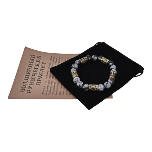 Рунический браслет из натурального обсидиана и бижутерного сплава с покрытием под золото.