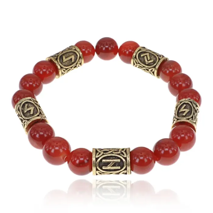 Браслет с рунами под золото Чистка и защита от негатива, с нат. камнем Сердолик 10мм BSR2-079