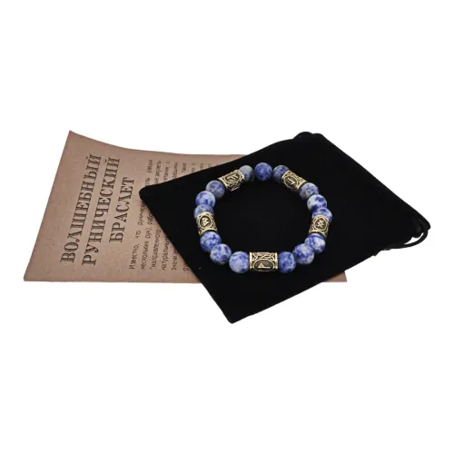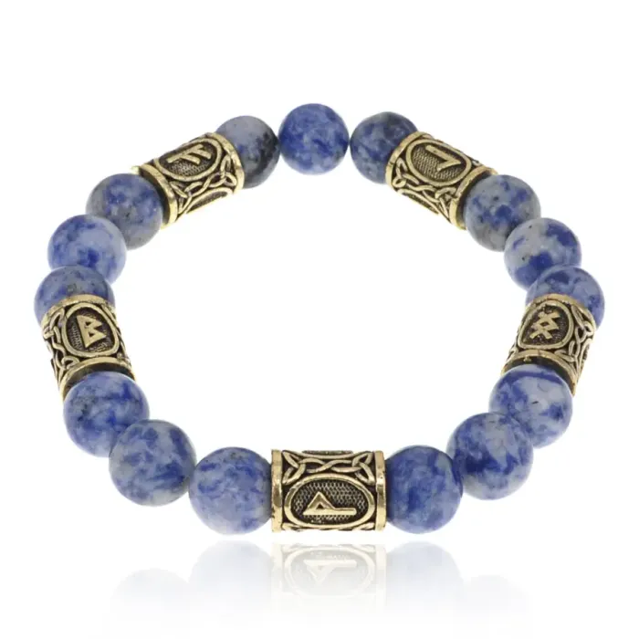 Браслет с рунами под золото Стабильность в бизнесе, с нат. камнем Содалит 10мм BSR2-081