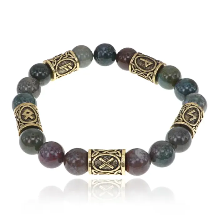 Браслет с рунами под золото Клиенты, приносящие деньги, с нат. камнем Яшма 10мм BSR2-083