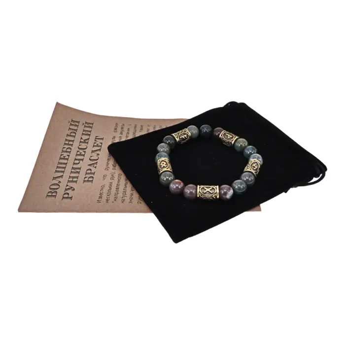 Размеры и комплектация: Внутренний диаметр около 6 см. В комплекте черный бархатный мешочек и буклет с описанием значений рун и камней.