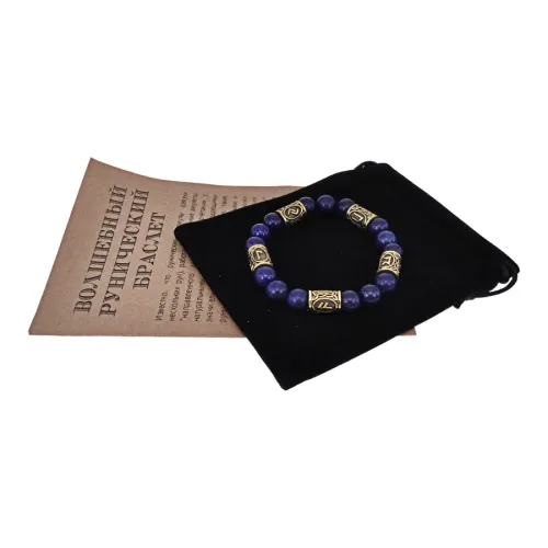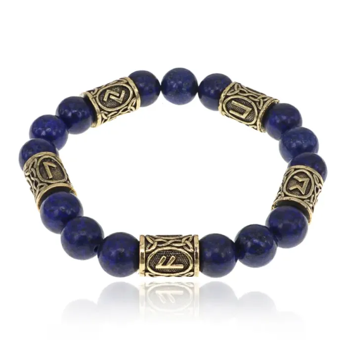 Браслет с рунами под золото Помощь Высших Сил, с нат. камнем Лазурит 10мм BSR2-085