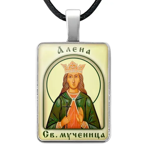 Нательная иконка «Алёна» из бижутерного сплава с объёмной стеклянной линзой.