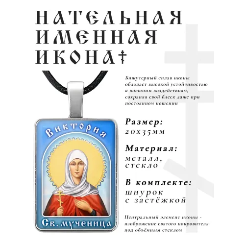 Именная иконка Виктория — сувенир из бижутерного сплава с объёмной стеклянной линзой.