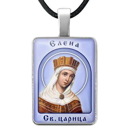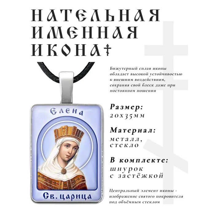 Именная иконка Елена — нательный аксессуар из бижутерного сплава с объёмной стеклянной линзой.