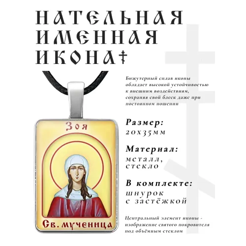 Именная иконка Зоя — сувенир из бижутерного сплава с объёмной стеклянной линзой.