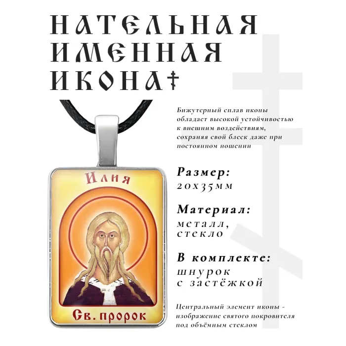Именная иконка Илия (Илья) — сувенир из бижутерного сплава с объёмной стеклянной линзой.
