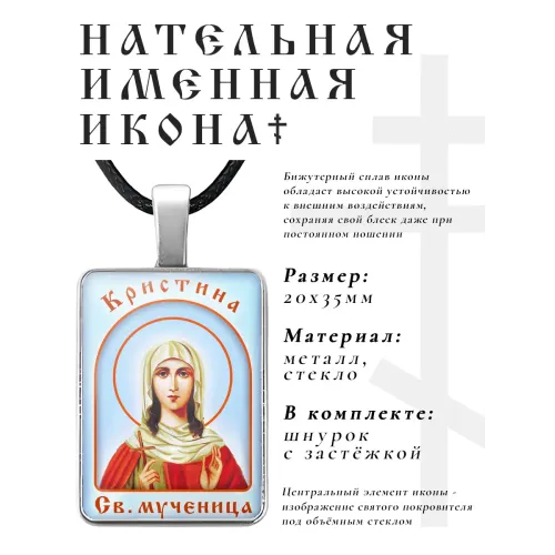 Именная иконка Кристина — сувенир из бижутерного сплава с объёмной стеклянной линзой.