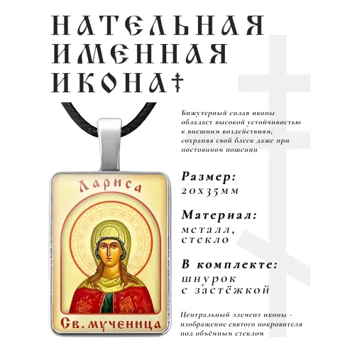 Нательная иконка с именем Лариса из бижутерного сплава с объёмной стеклянной линзой.