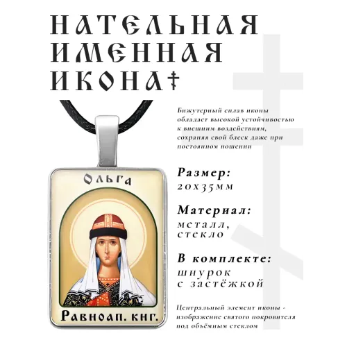 Нательная иконка из бижутерного сплава с объёмной стеклянной линзой.