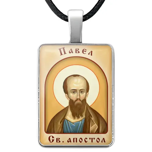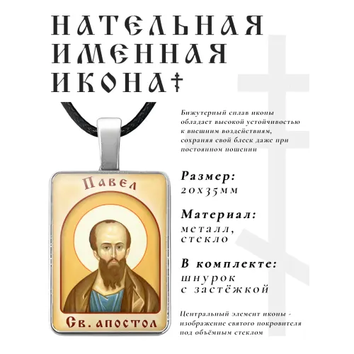 Именная иконка Павел — нательный аксессуар из бижутерного сплава с объёмной стеклянной линзой.