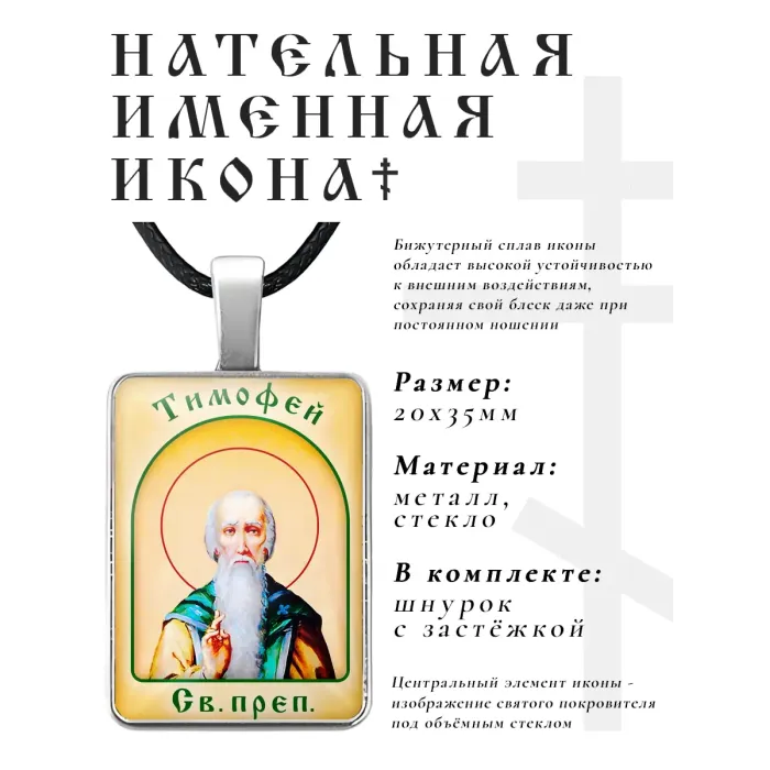 Именная иконка Тимофей — сувенир из бижутерного сплава с объёмной стеклянной линзой.