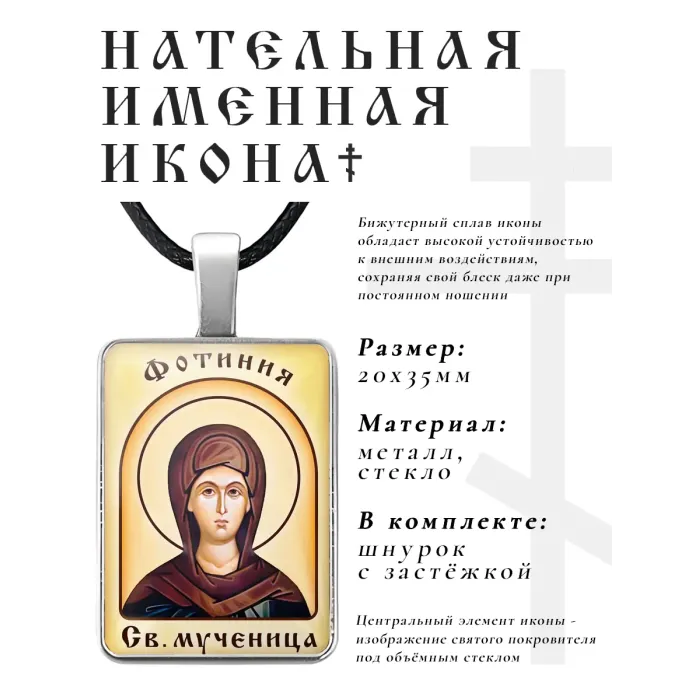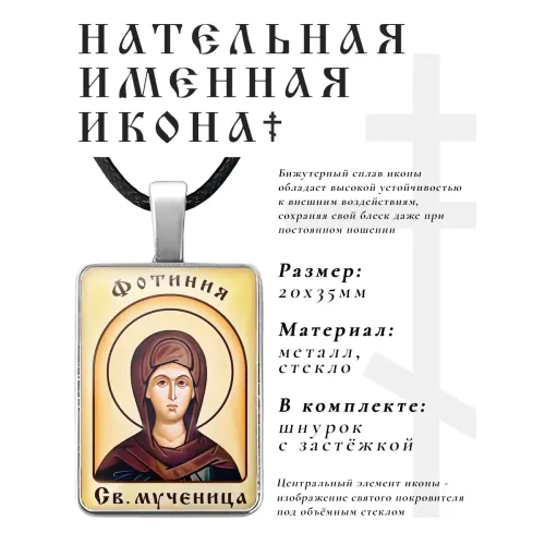Именная иконка Фотиния (Светлана) из бижутерного сплава с объёмной стеклянной линзой.