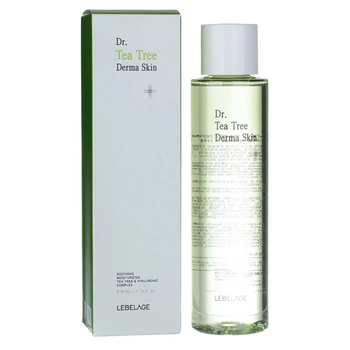 Успокаивающий тонер для лица с экстрактом чайного дерева Dr. TEA TREE DERMA SKIN от Lebelage — это эффективное средство для ухода за кожей, которое помогает освежить её и восполнить потерю влаги. Тонер способствует нормализации гидролипидного и кислотного баланса эпидермиса. Благодаря содержанию экстракта чайного дерева продукт обладает успокаивающими и противовоспалительными свойствами, укрепляет защитные функции кожи и снижает её чувствительность. Гиалуроновая кислота в составе обеспечивает глубокое увлажнение, усиливая действие экстракта чайного дерева.