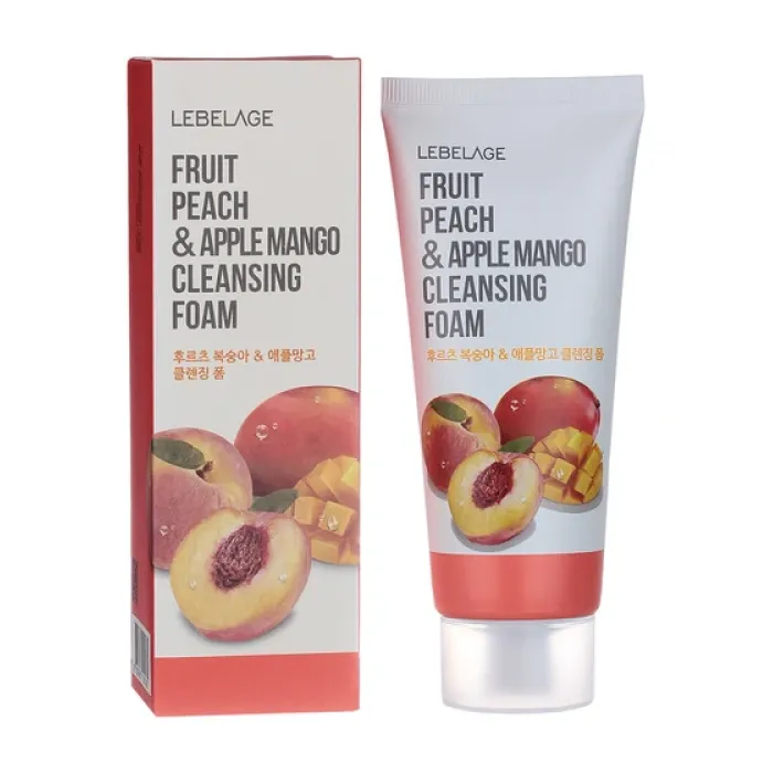 Пенка для умывания FRUIT PEACH&APPLE MANGO CLEANSING FOAM от Lebelage обеспечивает мягкое и эффективное очищение кожи. Она удаляет остатки макияжа и загрязнения, выравнивает тон кожи, устраняет тусклость и усталость. Экстракт персика оказывает смягчающее и тонизирующее действие на кожу, в то время как экстракт манго способствует синтезу коллагена, омолаживает и придаёт коже гладкость.
