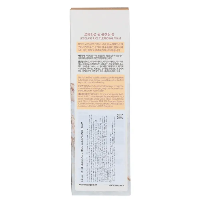 Пенка для умывания с экстрактом риса RICE CLEANSING FOAM 100 мл Lebelage