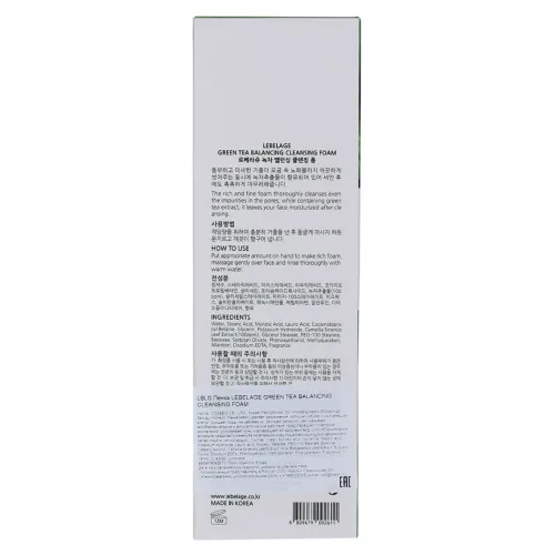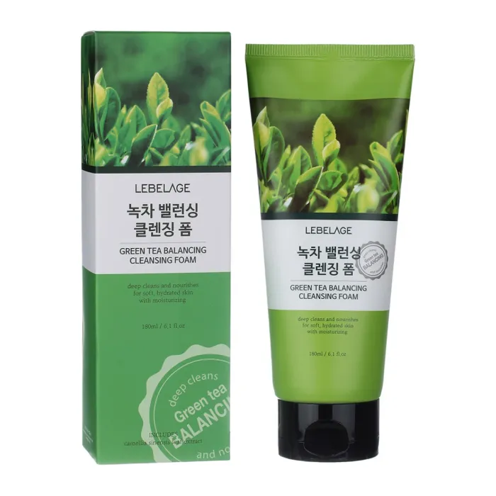 Балансирующая пенка для умывания с экстрактом зелёного чая GREEN TEA BALANCING CLEANSING FOAM от Lebelage предназначена для мягкого и эффективного очищения кожи. Она обладает нежной текстурой, которая позволяет деликатно удалять загрязнения, излишки себума и ороговевшие клетки. Пенка не забивает поры и способствует их очищению.