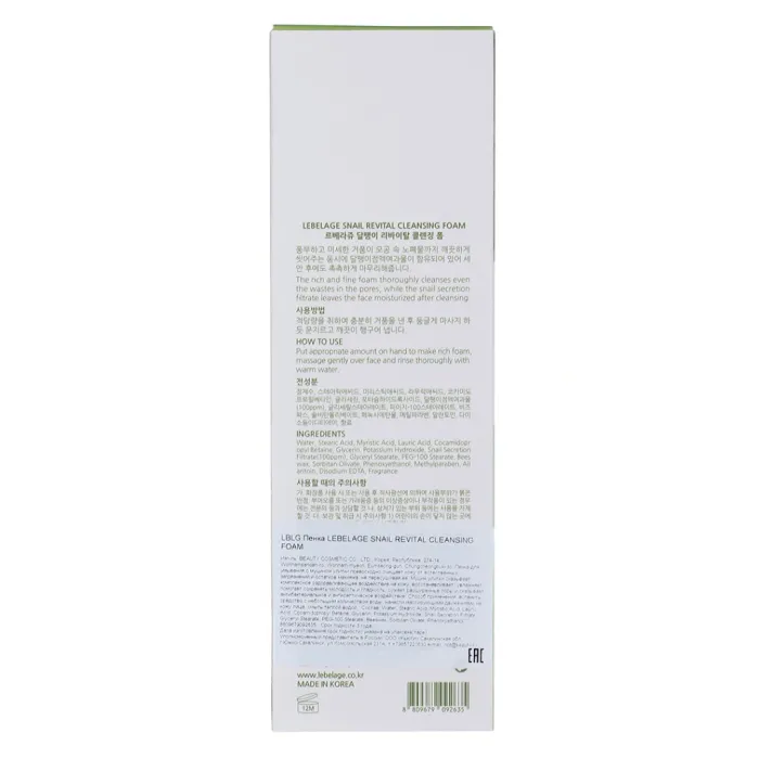 Пенка для умывания SNAIL REVITAL CLEANSING FOAM от бренда Lebelage предназначена для мягкого и эффективного очищения кожи. Производится в Республике Корея компанией BEAUTY COSMETIC CO., LTD. Средство бережно удаляет загрязнения и остатки макияжа, не пересушивая кожу.
