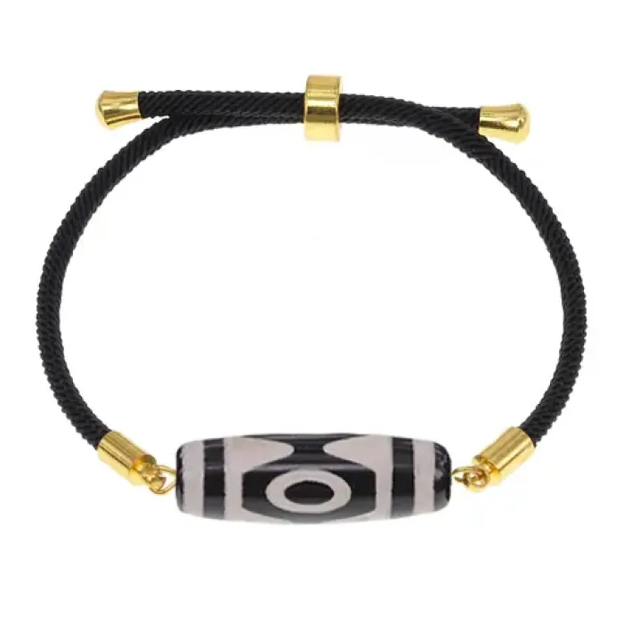 Регулируемый браслет с тибетской бусиной Дзи, выполненный вручную из натурального агата.