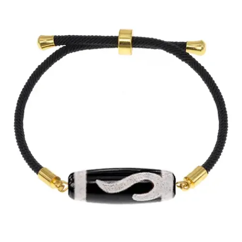 Браслет с бусиной Дзи Золотой ключ на черном шнуре BSDA-09
