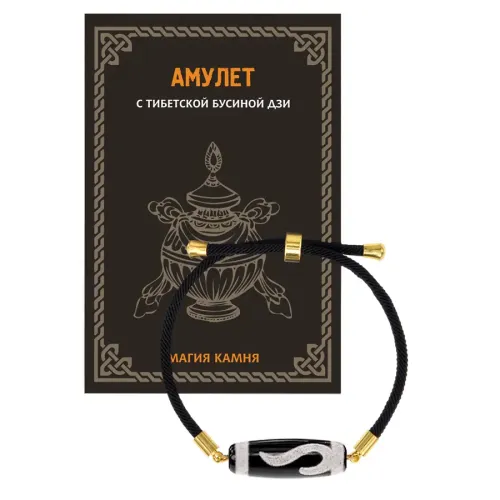 Браслет с бусиной Дзи на регулируемом шнуре. Бусина из натурального агата с символикой «Золотой ключ».