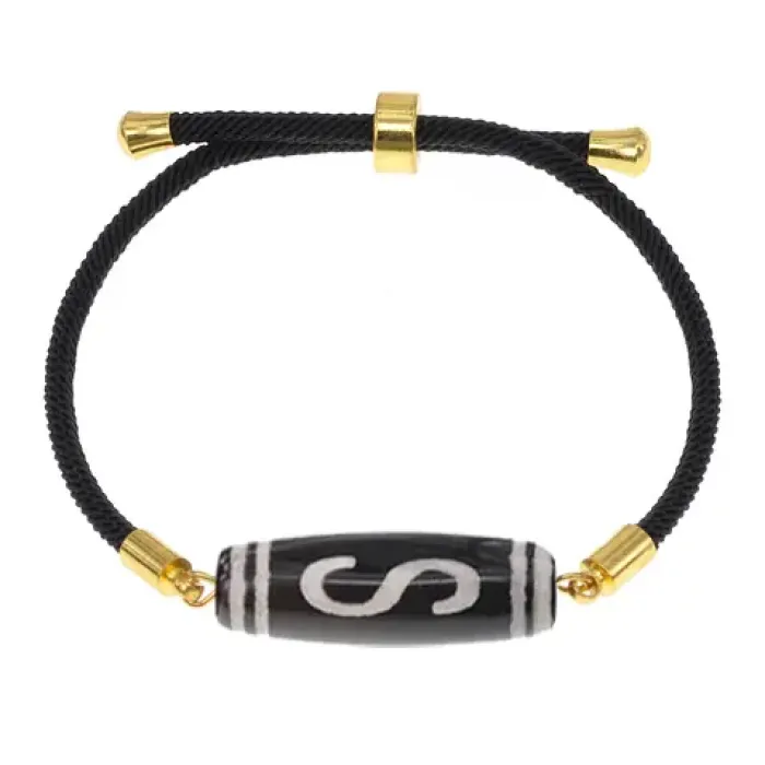 Браслет с бусиной Дзи Денежный крючок на черном шнуре BSDA-10