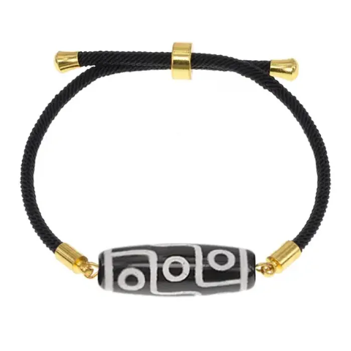Регулируемый браслет с тибетской бусиной Дзи на шнуре.