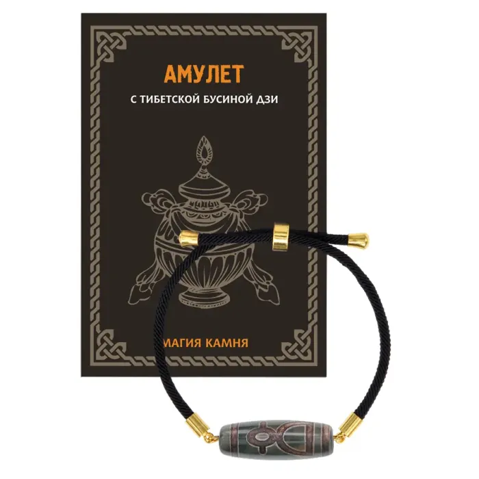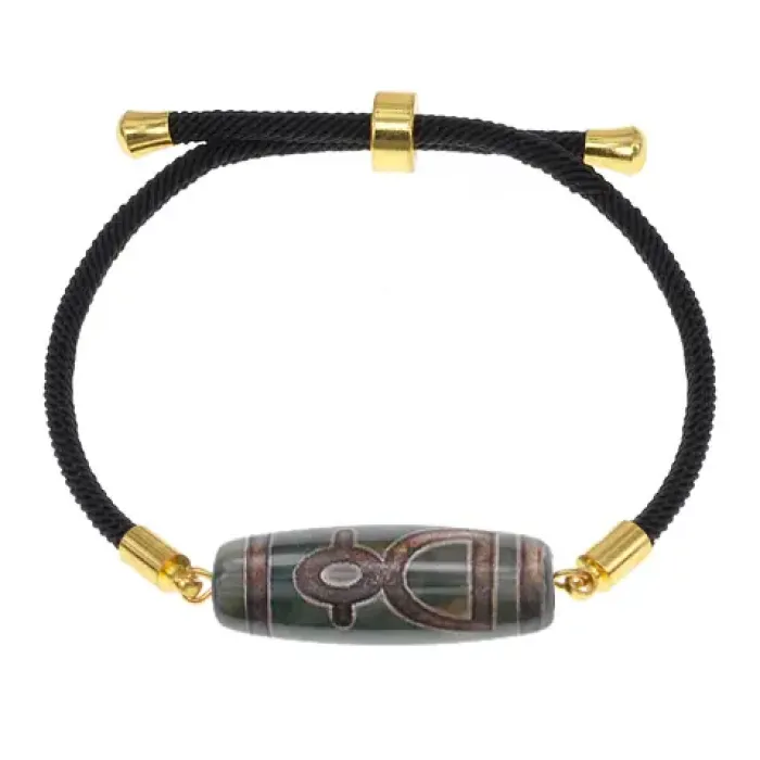 Браслет с тибетской бусиной Дзи Кубера на регулируемом шнуре.