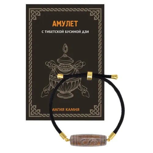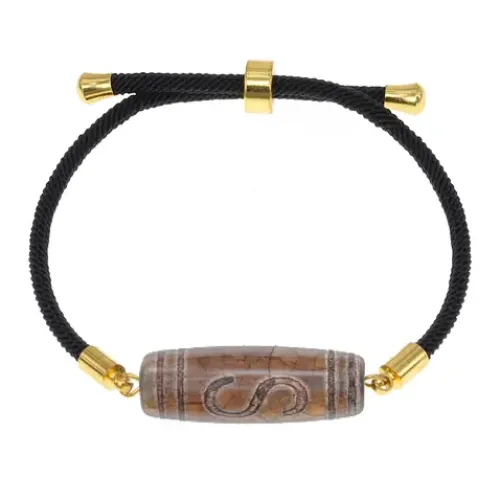 Браслет с тибетской бусиной Дзи из натурального агата на регулируемом черном шнуре.