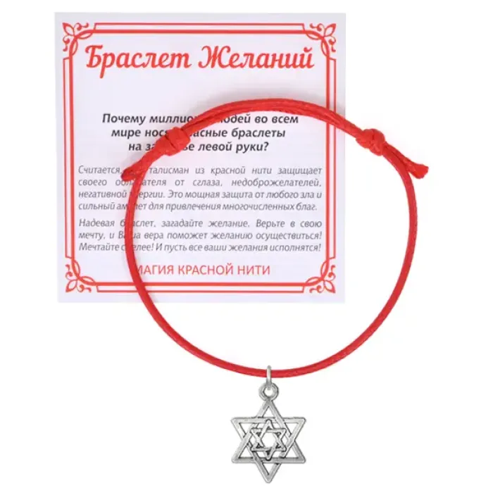 Браслет из красного вощёного шнура с подвеской в виде Звезды Давида.