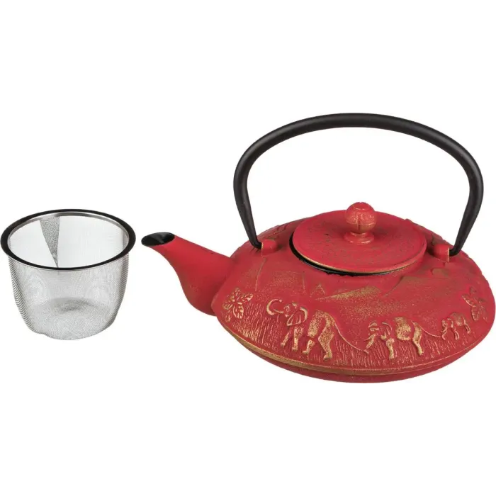 Корпус чайника изготовлен из чугуна, который способствует долгому удержанию тепла. Внутреннее эмалевое покрытие защищает материал от окисления. Конструкция оснащена внутренним сетчатым фильтром для предотвращения попадания чаинок в напиток.