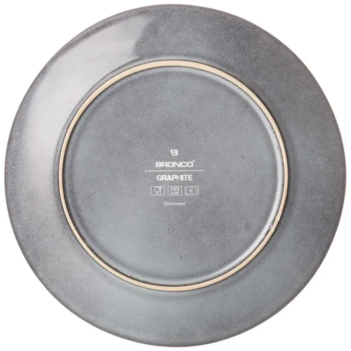 Обеденная тарелка Graphite диаметром 25 см от бренда Bronco предназначена для подачи основных блюд. Изделие изготовлено из высокотемпературной каменной керамики и имеет графический подглазурный рисунок.