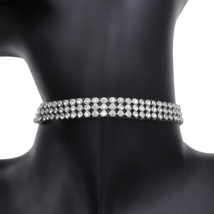 Чокер — бижутерный аксессуар из сплава с покрытием под серебро и вставками из страз. Замок типа «лобстер».