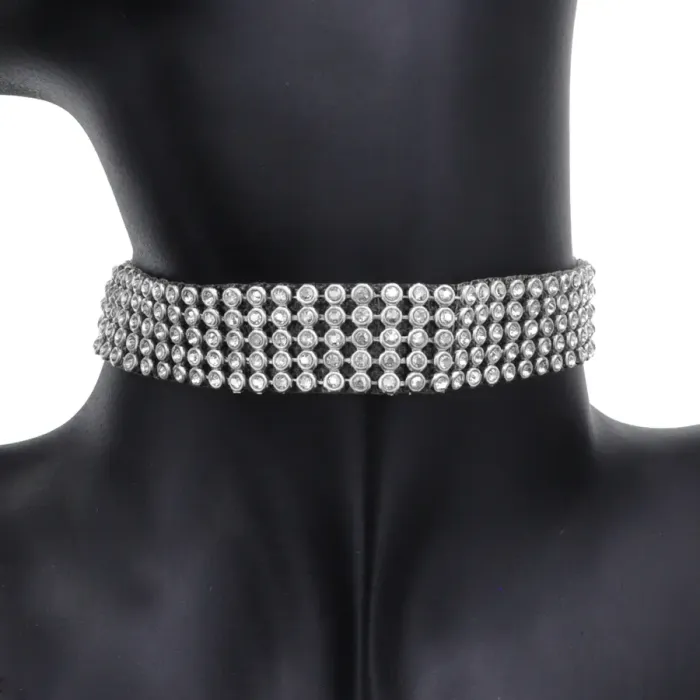 Чокер из бижутерного сплава со стразами и замком типа «лобстер».